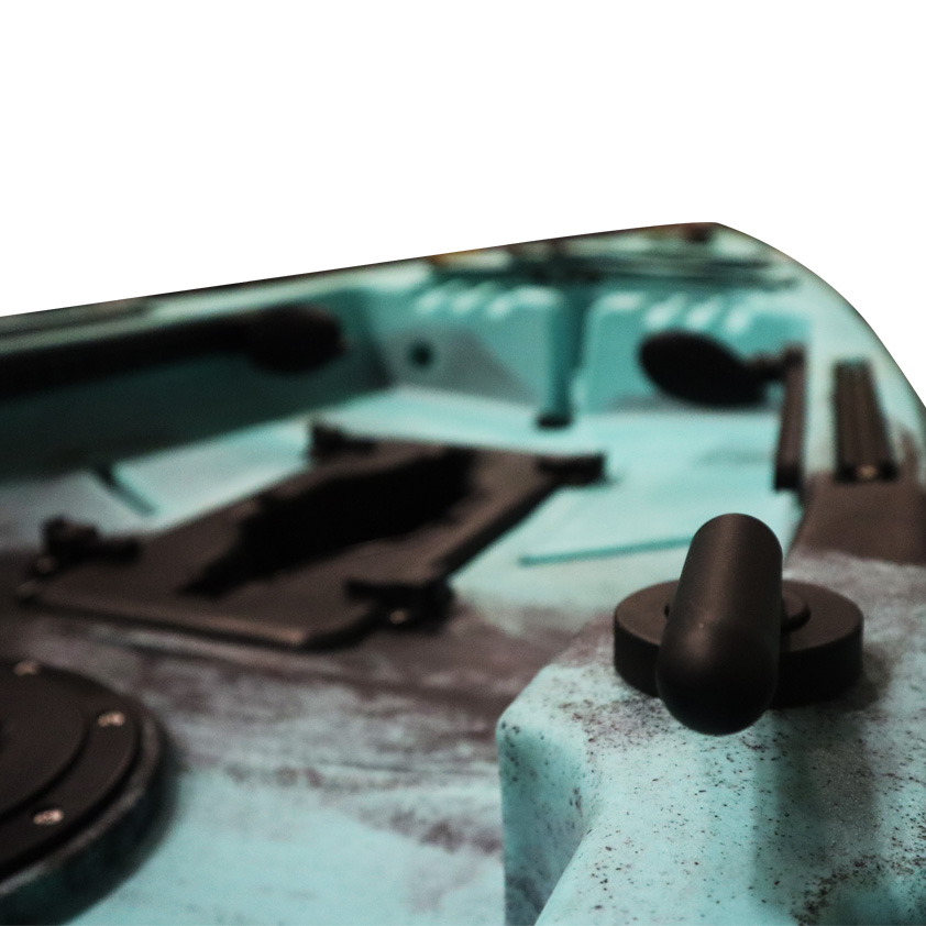 Equipped with a round storage hatch between the paddler’s seat and the Fin Drive System, front storage, and rear storage system, with added space behind your seat, space will be no problem. The Mahi Mahi is equipped with six horizontal molded rod placements and two integrated rod holders at the back. On either side of the paddler, the integrated tackle box storage compartments are molded into the design, not to forget the molded-in cup holder.